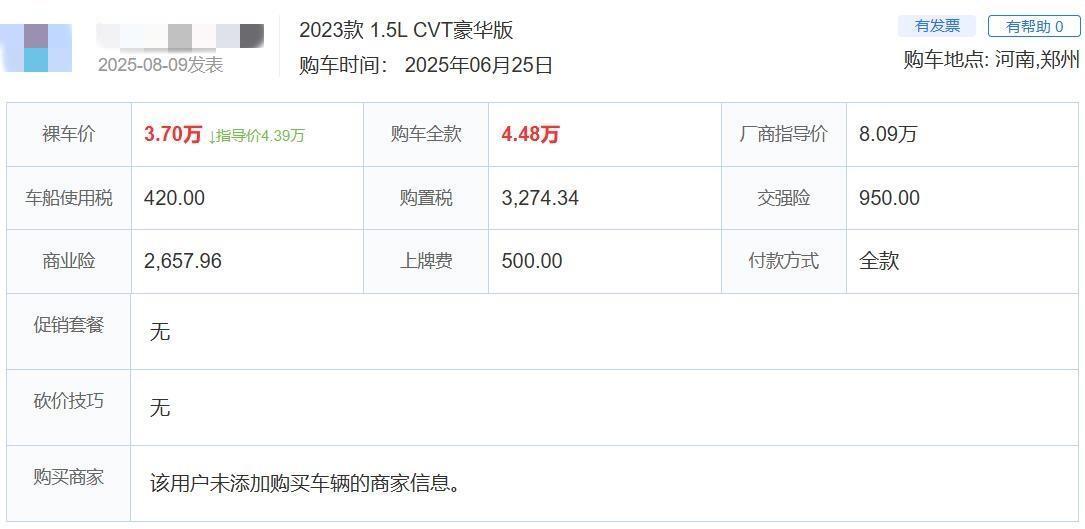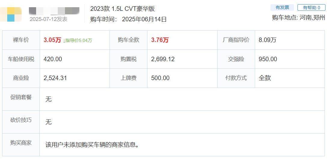 最后,我们再来看一下荣威i5的车主提车价格。我们获取了两位河南郑州车主的提车价格,他们选择的都是1.5L CVT豪华版,属于自动挡车型。该车售价8.09万元,第一位车主优惠了4.39万元,价格变成了3.70万元。第二位车主优惠了5.04万元,价格变成了3.05万元。这两位车主价格上的差异可能是选取的补贴方式不同,比如一个选择了国补,一个选择了省补,存在几千块钱的差价也十分正常。最后,对于荣威i5,您有什么看法?